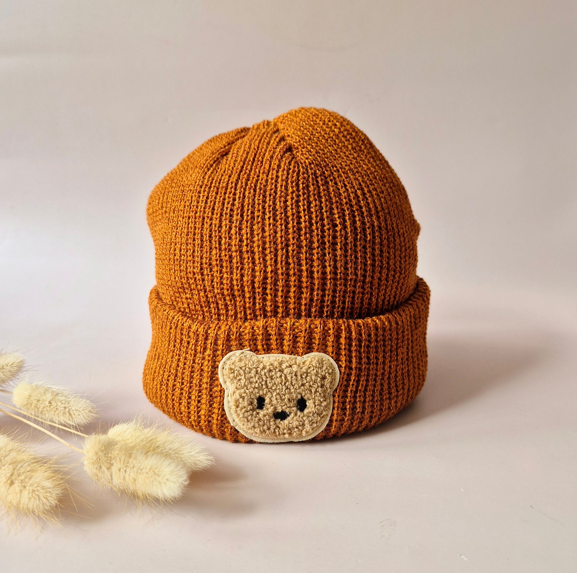 Rammelaartje Beer Beanie – Roestkleurige warme gebreide muts voor baby’s en peuters