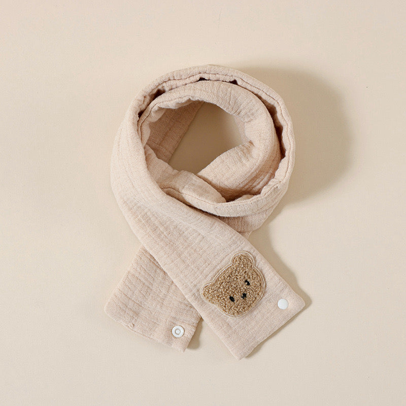 De lieve berenapplicatie geeft de sjaal een speelse uitstraling, terwijl de drukknopsluiting zorgt dat hij goed blijft zitten, zelfs bij de allerkleinsten. Dankzij het gebruiksvriendelijke ontwerp kan de sjaal makkelijk om- en afgedaan worden.