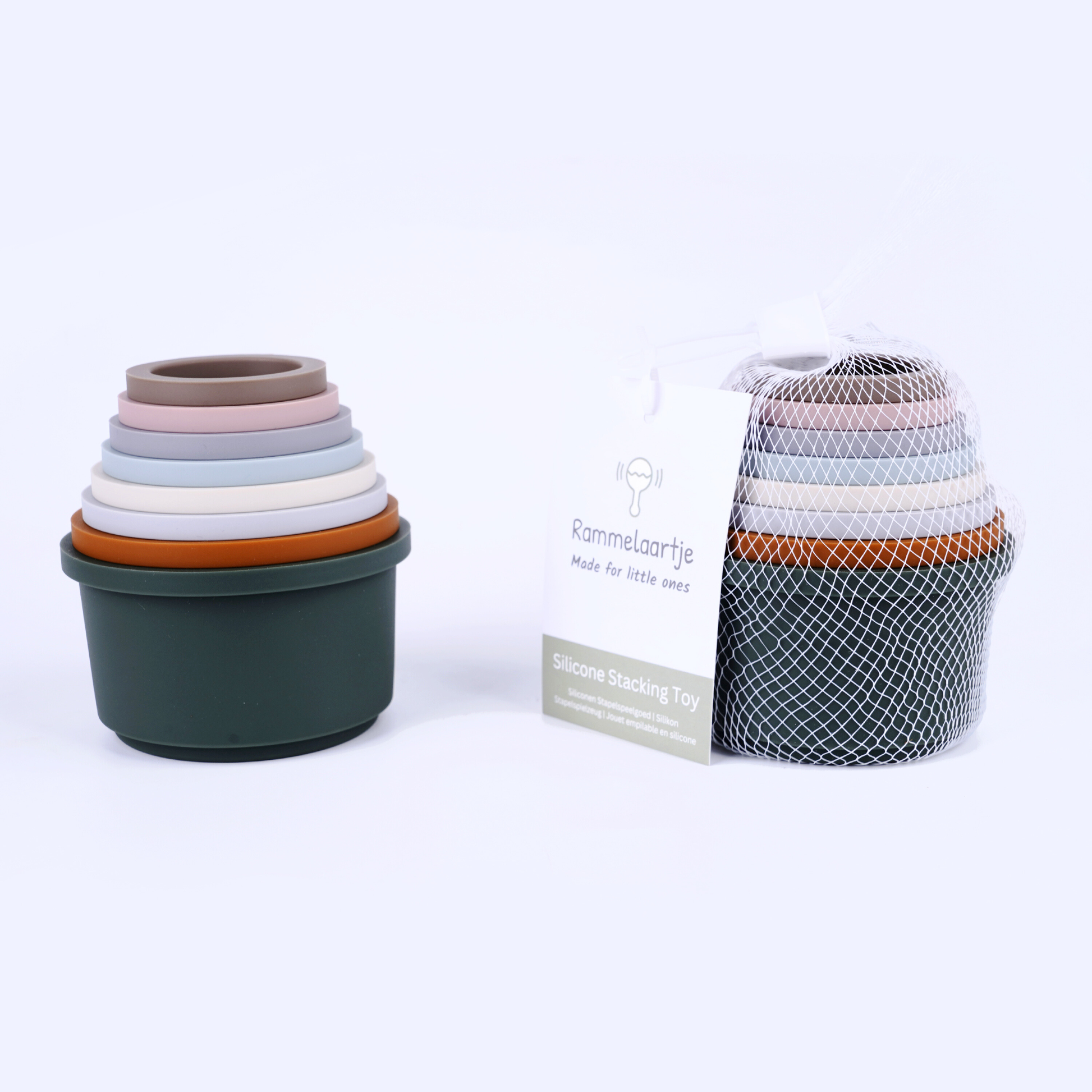 Ontdek het favoriete stapelspeelgoed van veel ouders: onze silicone stapelbekers in het unieke kleurenpalet van Rammelaartje. Deze set van 8 zachte, flexibele bekers stimuleert spelenderwijs de fijne motoriek, hand-oogcoördinatie en creativiteit van jouw kindje.