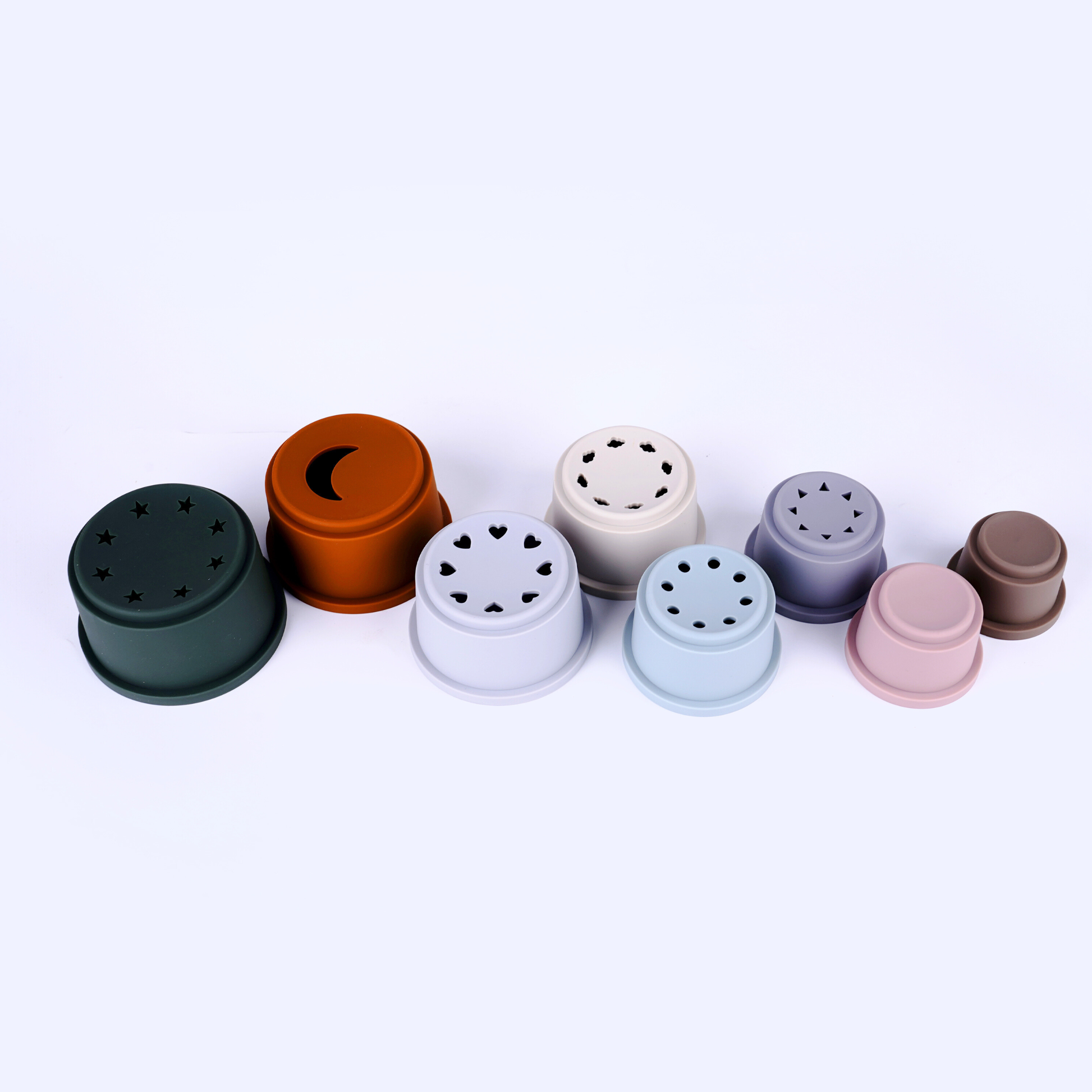Elke beker heeft een andere vorm in de onderkant (zoals sterren, maantjes en hartjes), waardoor ze perfect zijn voor sensorisch spel, waterpret en strandavonturen. Je kindje kan stapelen, sorteren, ontdekken én eindeloos experimenteren.