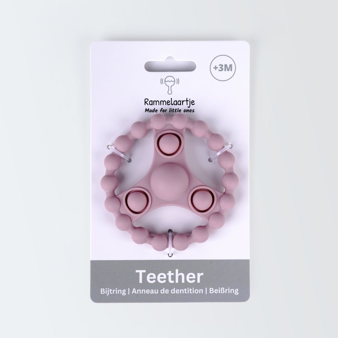 De ronde vorm met pop-it functie zorgt voor extra speelplezier en stimuleert de fijne motoriek. De subtiele aardetinten passen perfect bij elke babyuitzet en maken de bijtring niet alleen functioneel, maar ook prachtig om te zien.