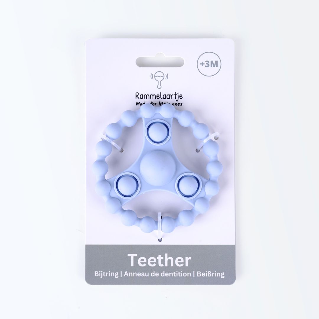 Siliconen Bijtring met Pop-it - Lichtblauw