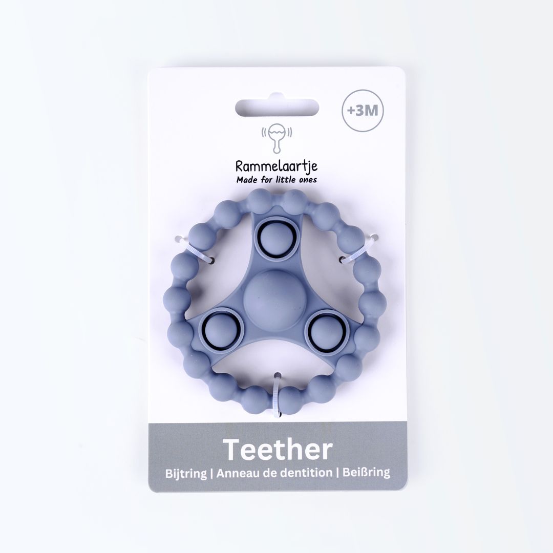 Siliconen Bijtring met Pop-it - Grijsblauw