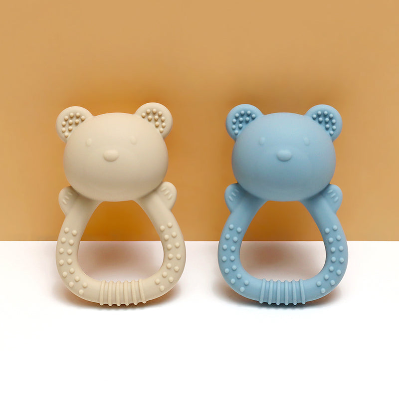 Siliconen Rammelaar Bijtring Beer - Blauw