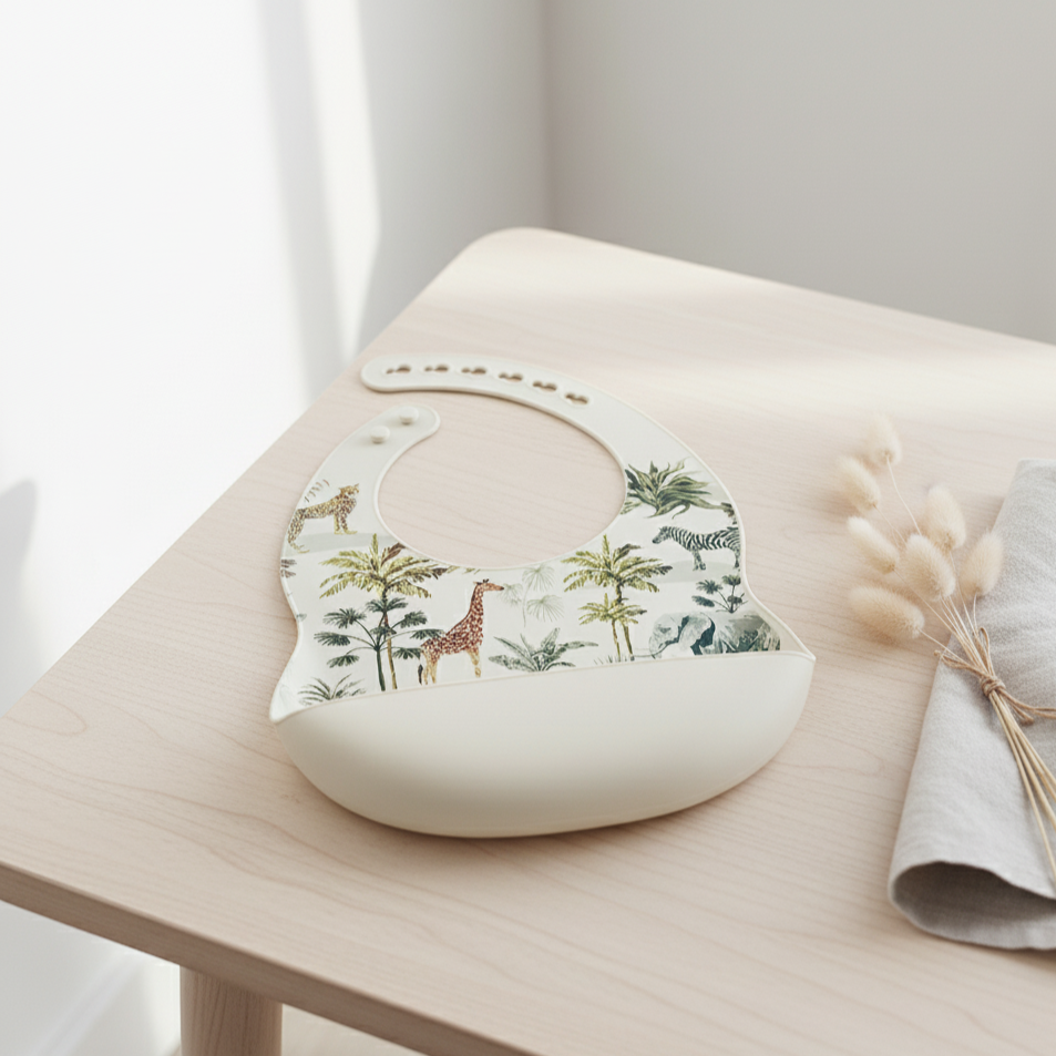 Maak de eetmomentjes leuker en schoner met onze siliconen slabber Jungle in beige. Deze slabber combineert een stijlvolle jungleprint met ultiem gebruiksgemak. Dankzij het zachte, BPA-vrije siliconenmateriaal voelt hij comfortabel aan voor je kleintje, terwijl het ingebouwde opvangbakje alle kruimels en knoeipret opvangt.
