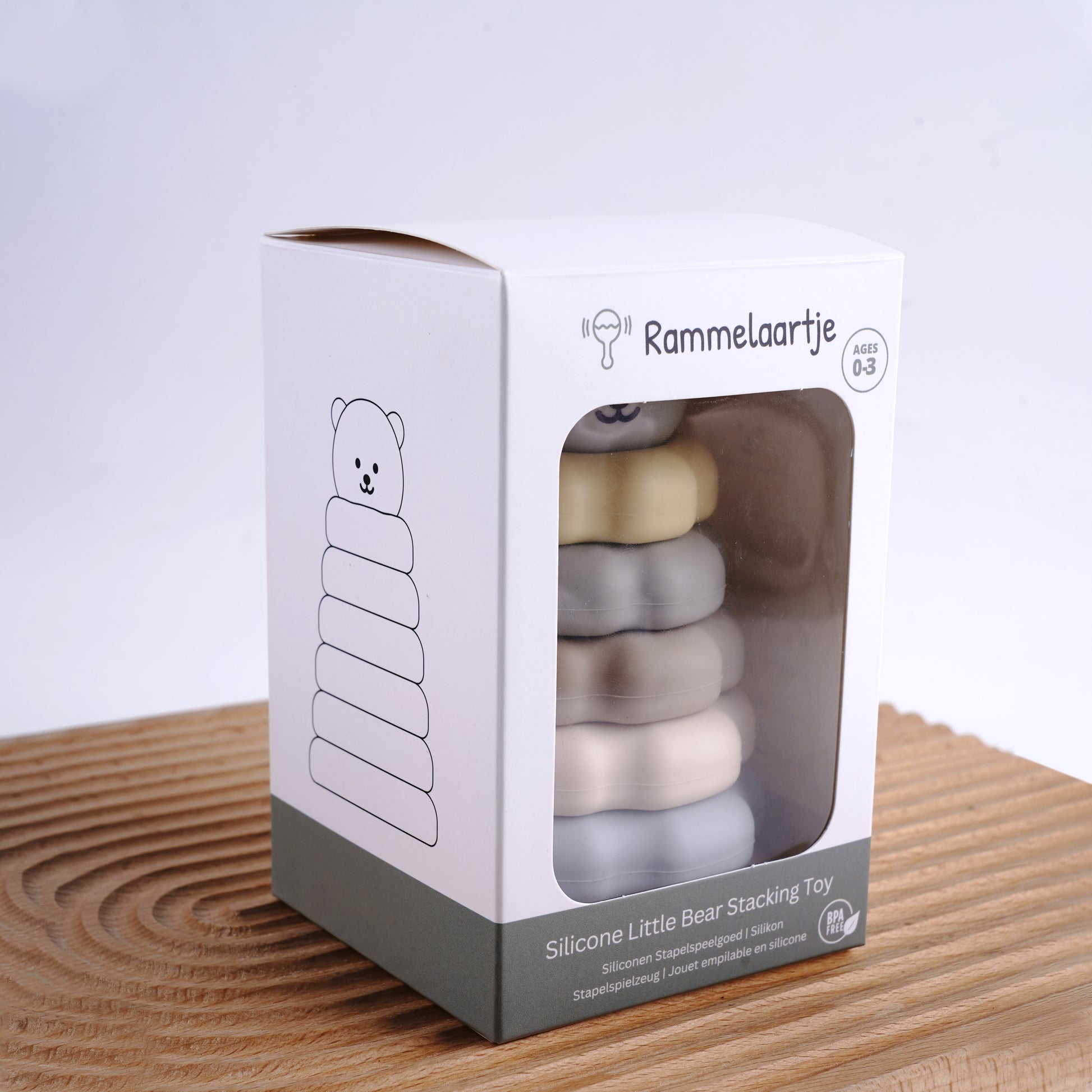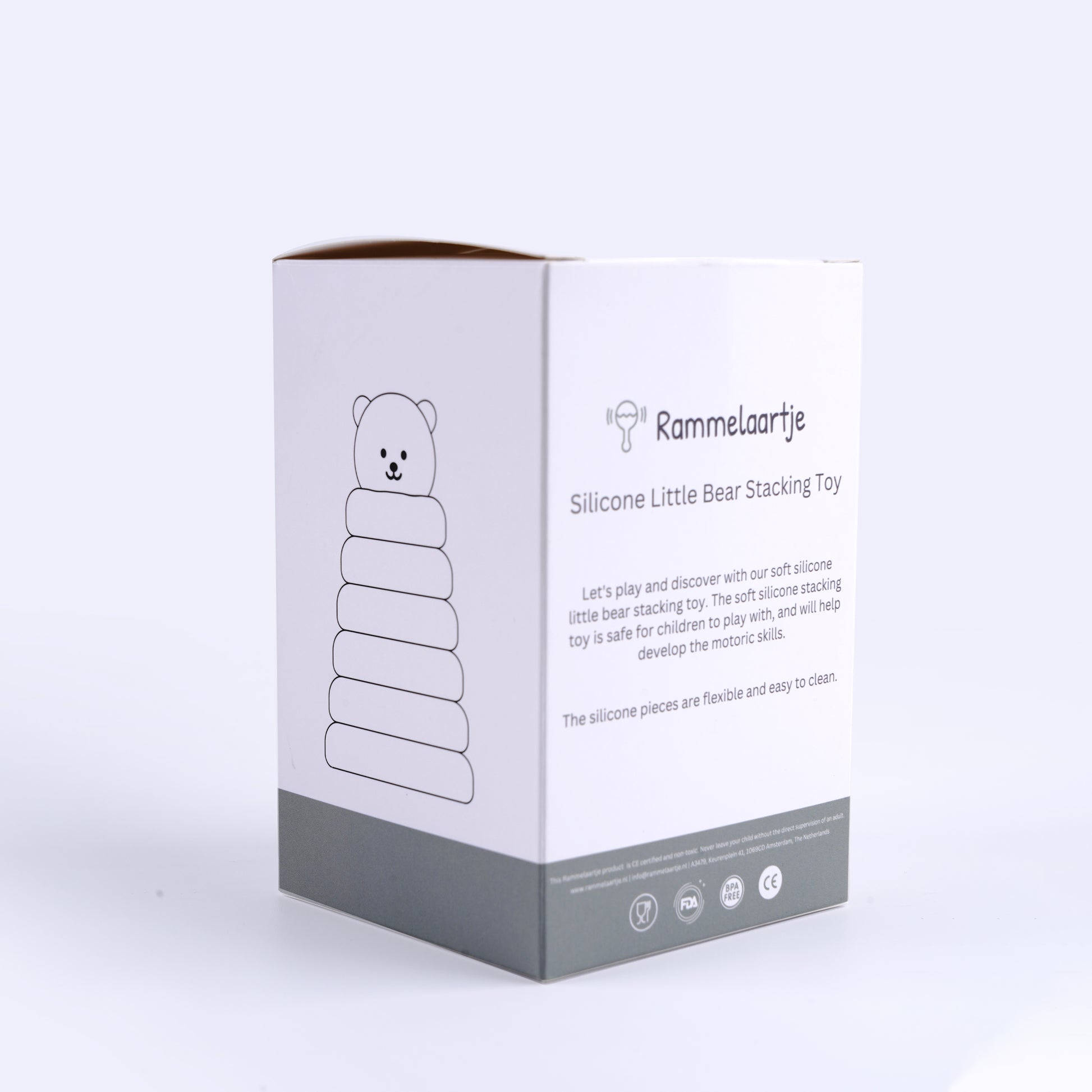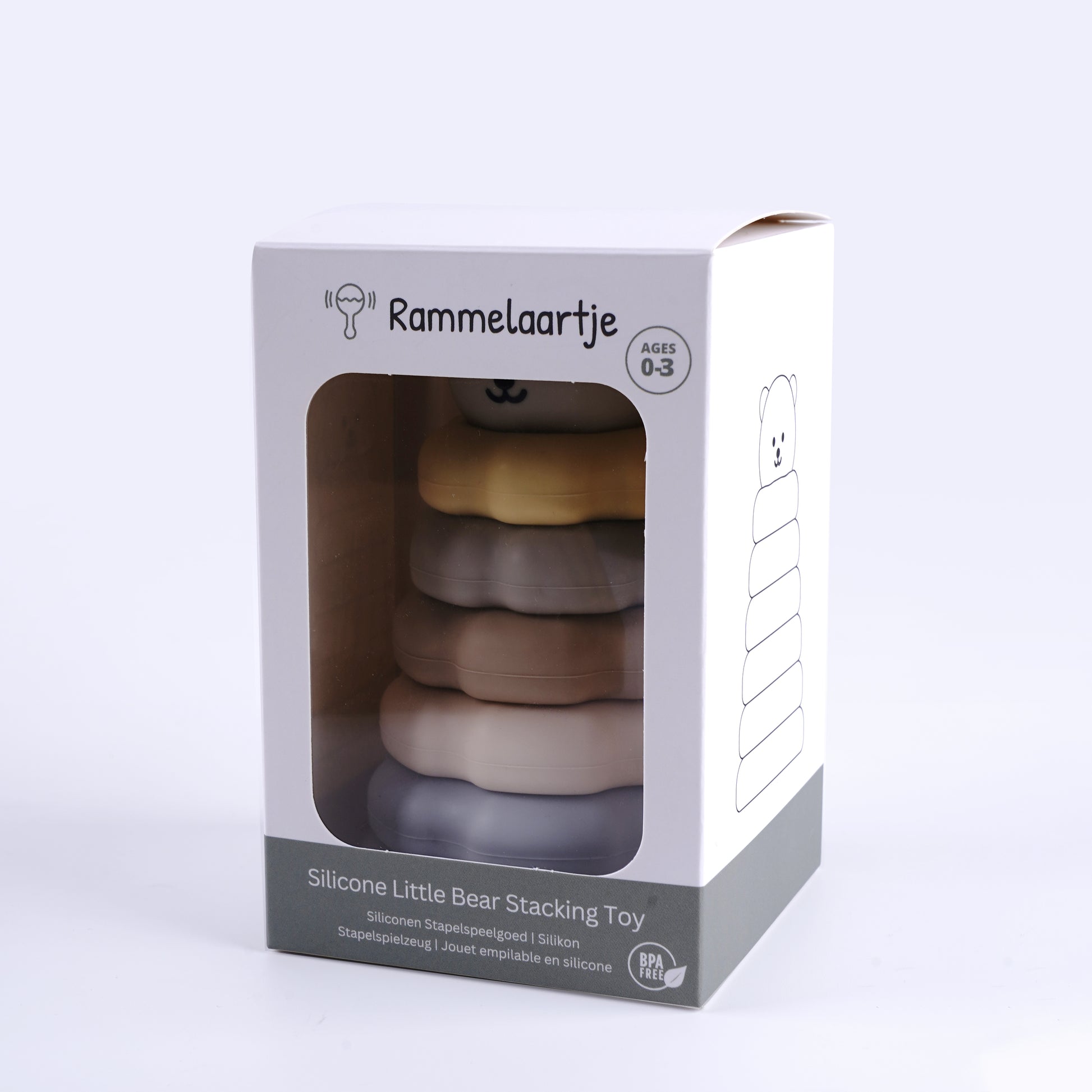 Laat je kindje spelen, ontdekken en ontwikkelen met deze prachtige siliconen stapeltoren in beervorm van Rammelaartje. De zachte, flexibele onderdelen zijn gemaakt van 100% BPA-vrij siliconen en daardoor volledig veilig om mee te spelen.
