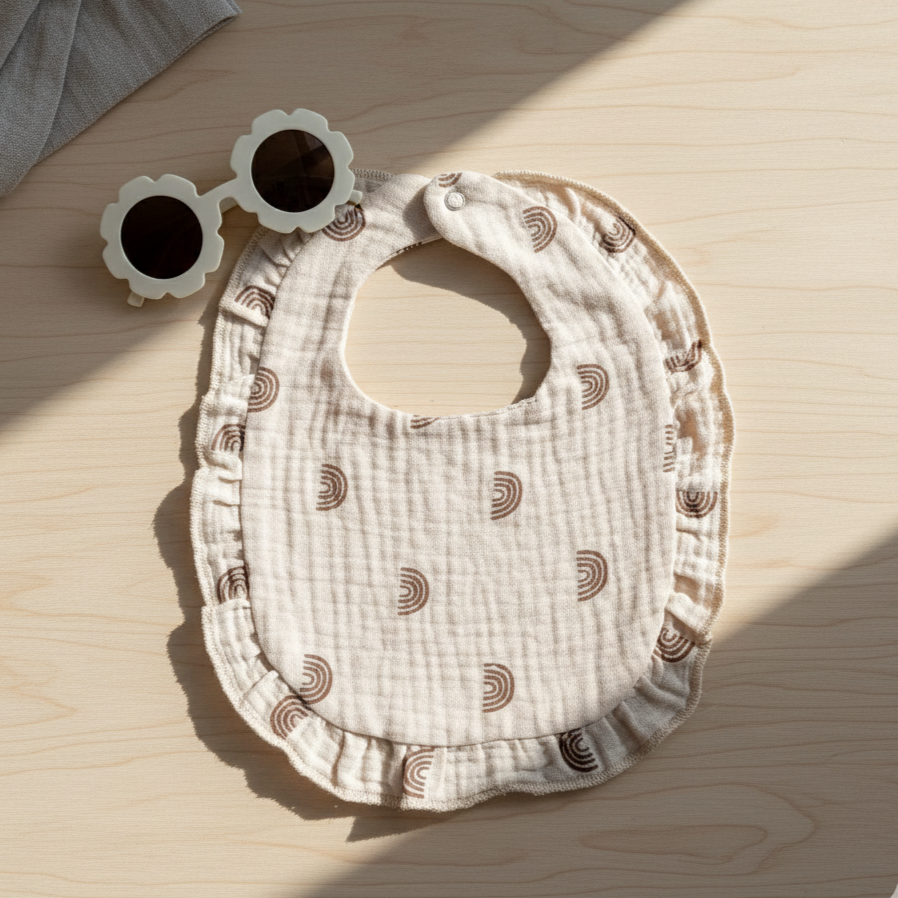 Onze slabbetjes zijn gemaakt van hoogwaardig hydrofiel katoen dat zacht is voor de gevoelige huid van je kleintje. Het absorberende materiaal zorgt ervoor dat eventuele morsingen snel worden opgenomen, terwijl de verstelbare sluiting zorgt voor een perfecte pasvorm voor baby's van alle maten.